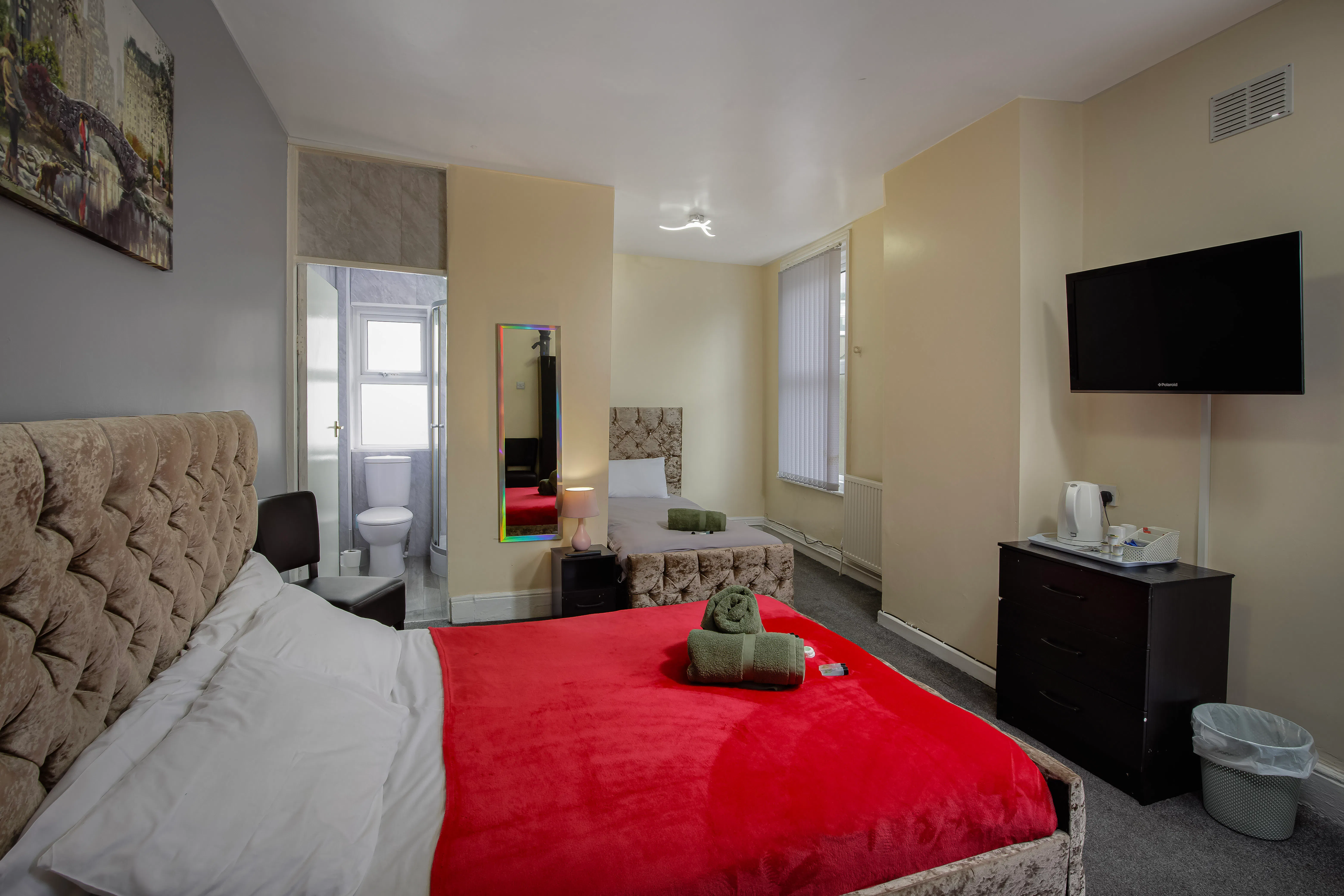 Ideal for families or small groups, the Quadruple Room features two double beds with views of the iconic Blackpool Tower. It comes with an en-suite bathroom, flat-screen TV, wardrobe, WiFi access, and in-room tea, coffee, and milk to help you settle in.